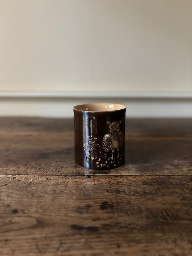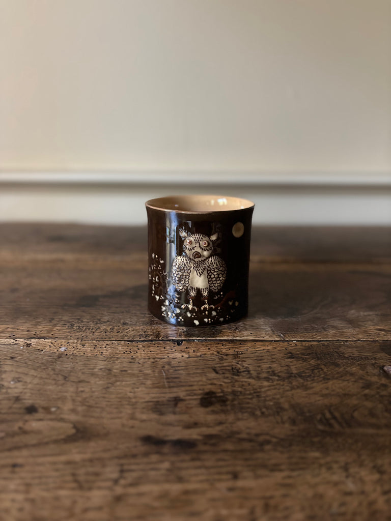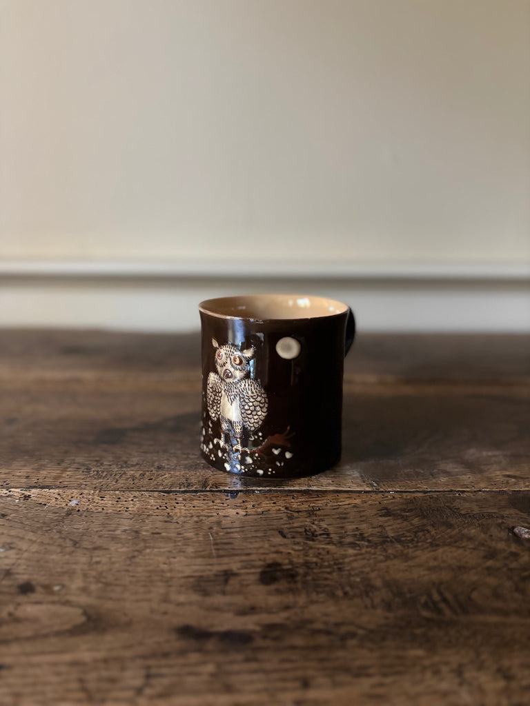 Savoyard Brown Coffee Mug with Hand-painted Owl Design