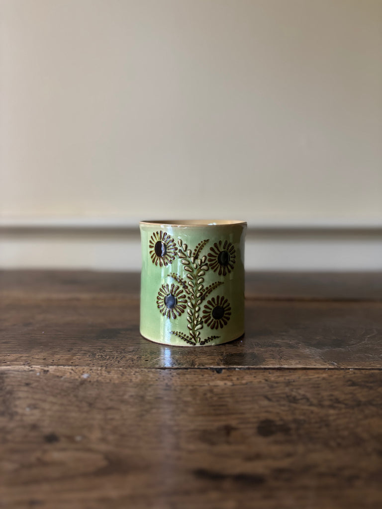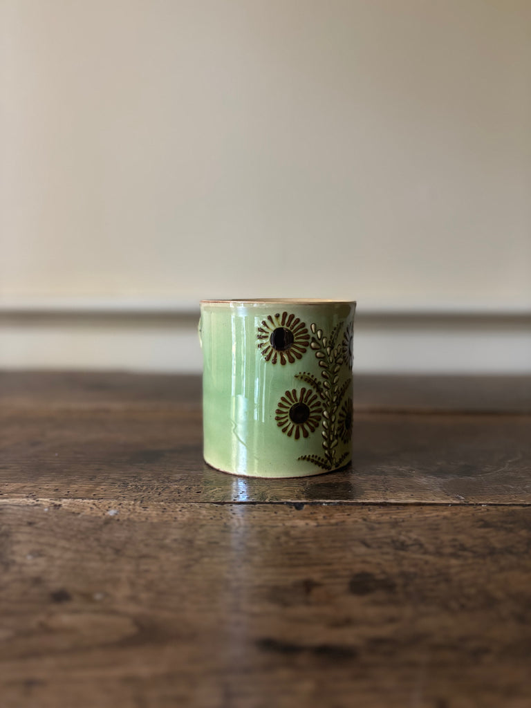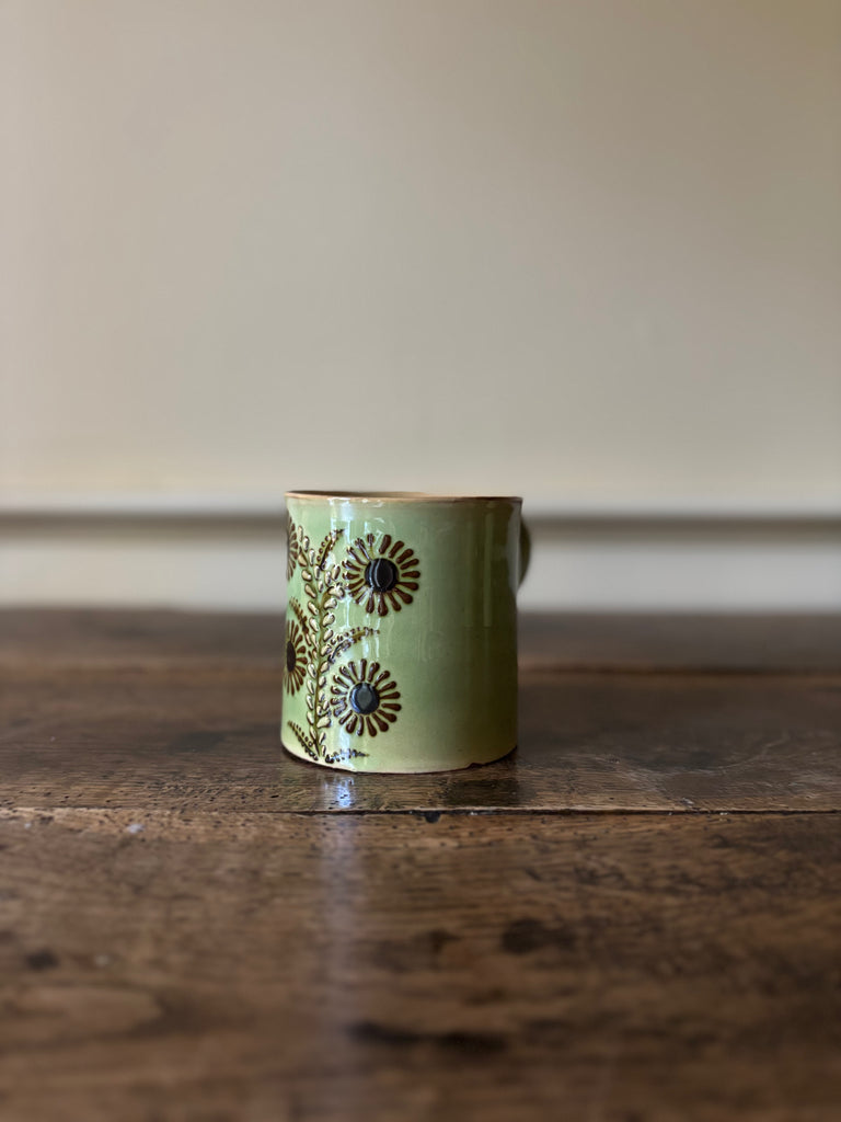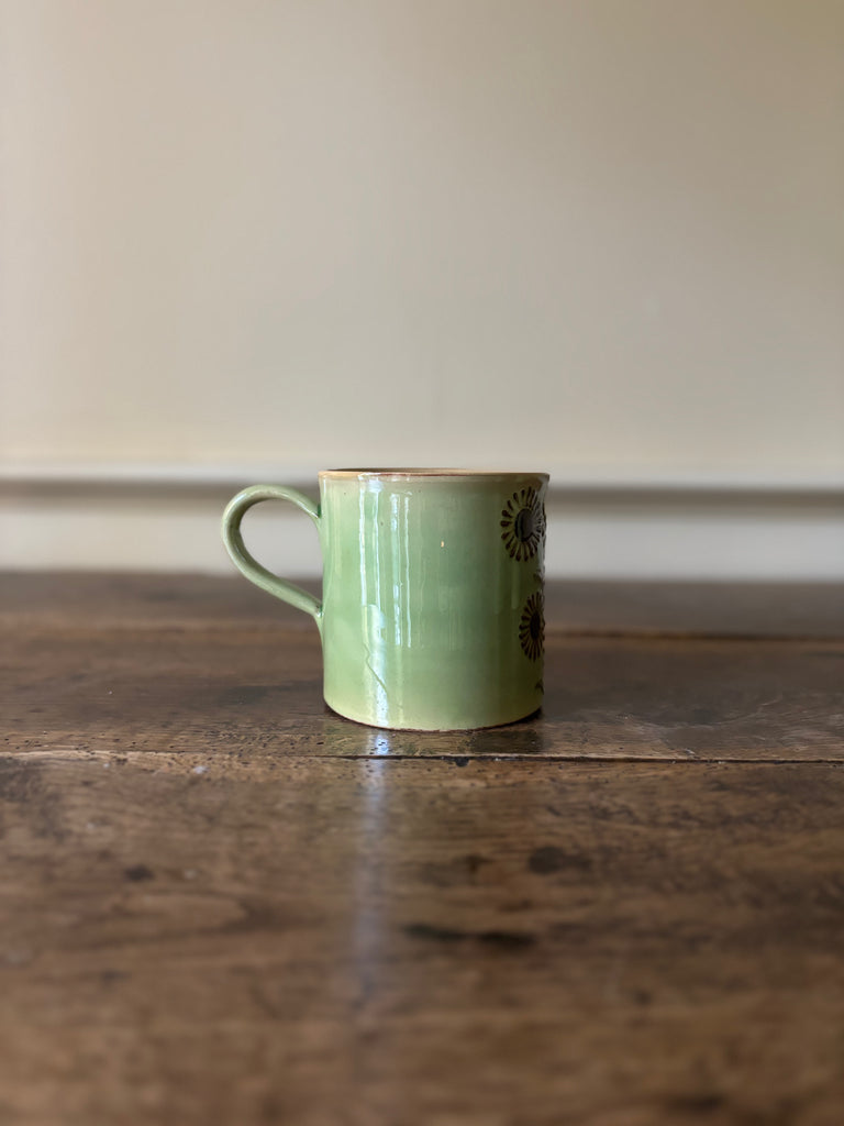 Savoyard Green Coffee Mug with Hand-painted Floral Design