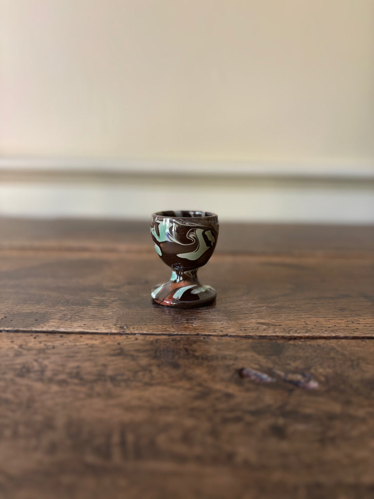 Savoyard Pair of Green Egg Cups with Jaspe Design