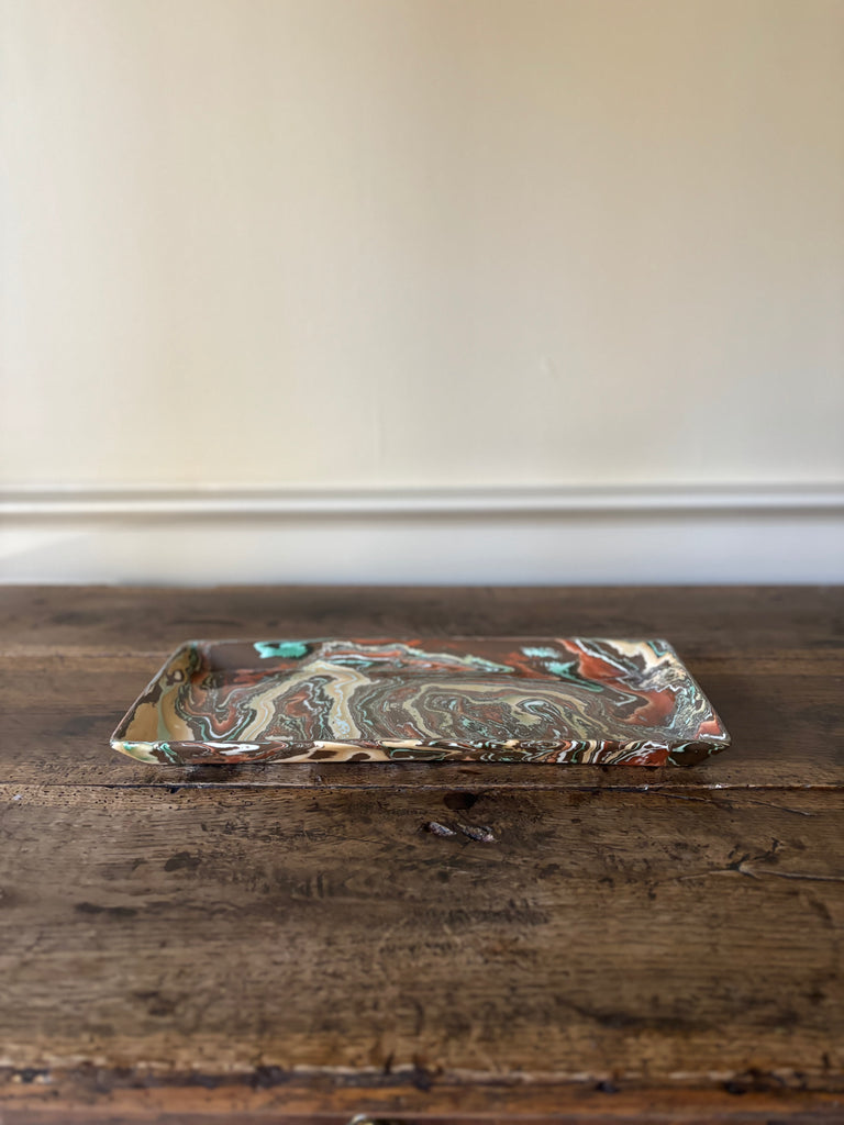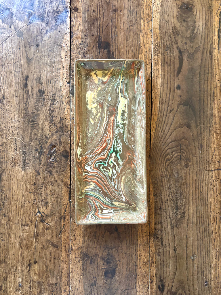 This ancestral technique of Terre Mêlée (mixed clays) earthenware dates back to the 18th century. Each piece is hand-sculpted from clay that has been infused with oxides. Once stamped into shape, the clay is left to dry in the sunlight. Once dried, it takes several dedicated hours to sand down the object to a thin layer. The entire process takes highly skilled hands and artistry, as well as patience to develop these incredible unique and beautiful pieces. Only after two firings does the magic reveal the final colors. We are in awe of the hands that take the time and concentration to develop these unique tableware and decorative pieces.