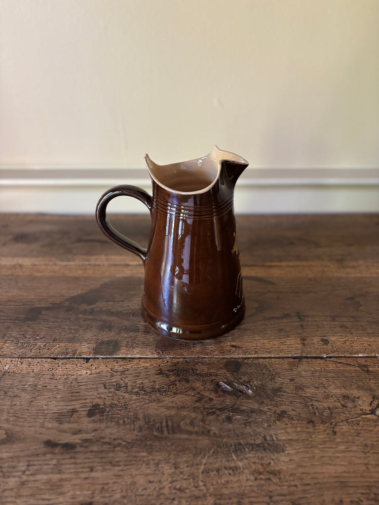 Savoyard Large Flared Brown Pitcher with Hand-Painted Goat Design