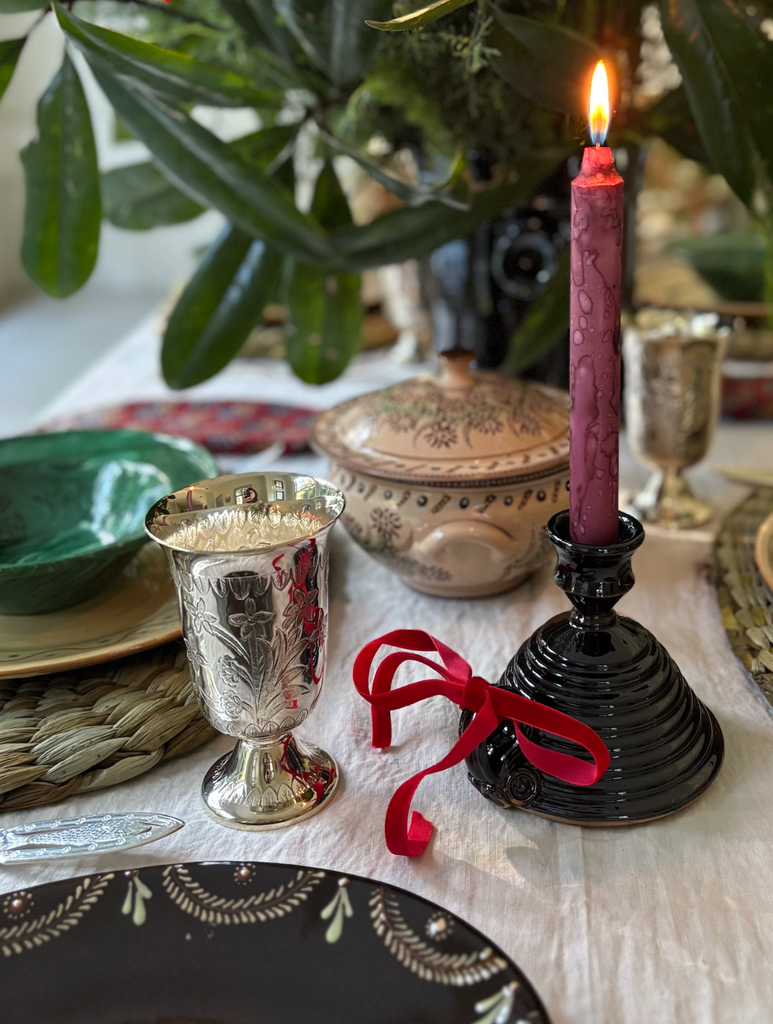 These pieces are produced from a historic factory founded in 1903. Still in operation today, the pottery is listed as a historic monument and perpetuates a tradition of glazed earthenware, while adding a few variations and innovations. The pottery is made using local clay, reputed to be of excellent quality and extracted from a nearby quarry. Entirely handmade, the pieces are turned or shaped, then slip-coated, decorated, glazed and fired. The pieces are decorated with white, black, or red slips of clay. The decorations are a skillful blend of tradition and artistic expression. The pieces are then glazed in typical pottery colors of green, honey, light yellow, or black.