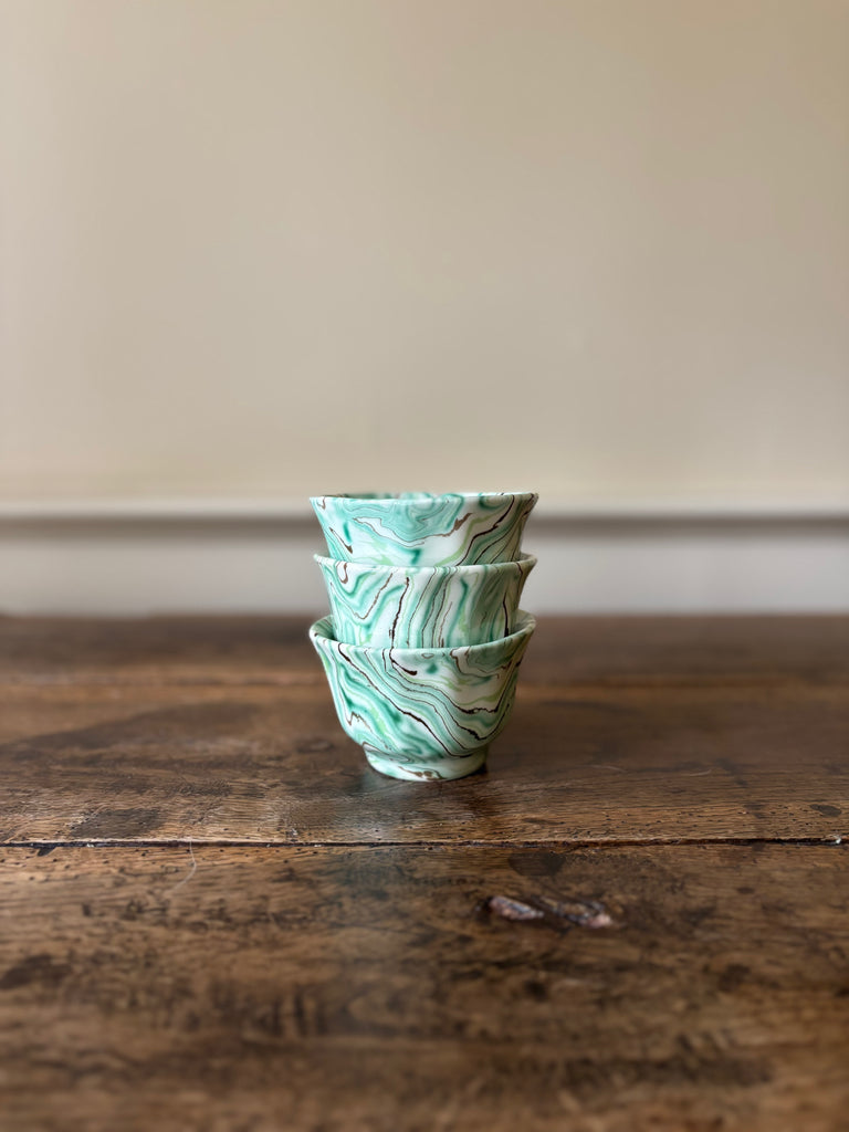 This ancestral technique of Terre Mêlée (mixed clays) earthenware dates back to the 18th century. Each piece is hand-sculpted from clay that has been infused with oxides. Once stamped into shape, the clay is left to dry in the sunlight. Once dried, it takes several dedicated hours to sand down the object to a thin layer. The entire process takes highly skilled hands and artistry, as well as patience to develop these incredible unique and beautiful pieces. Only after two firings does the magic reveal the final colors. We are in awe of the hands that take the time and concentration to develop these unique tableware and decorative pieces.