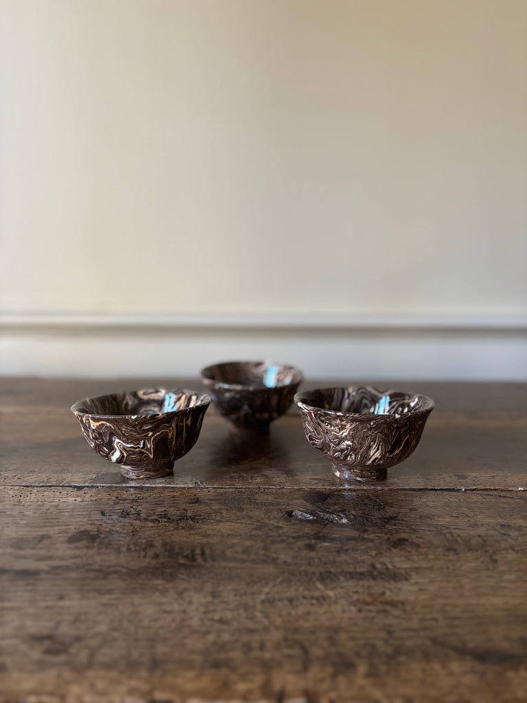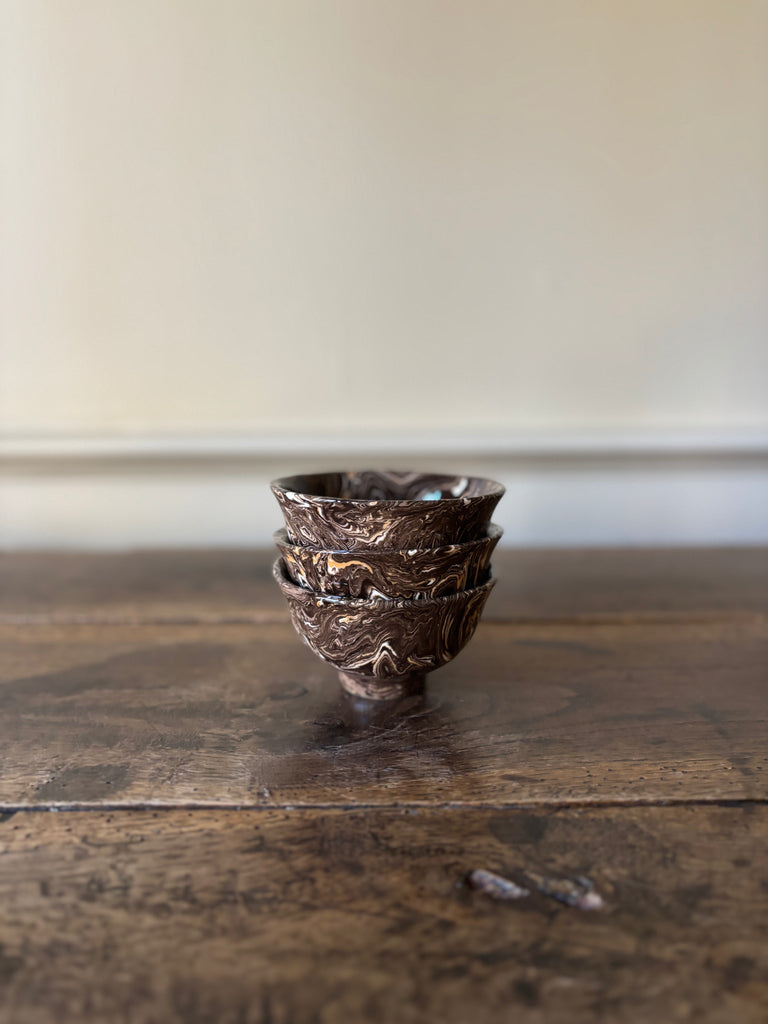 This ancestral technique of Terre Mêlée (mixed clays) earthenware dates back to the 18th century. Each piece is hand-sculpted from clay that has been infused with oxides. Once stamped into shape, the clay is left to dry in the sunlight. Once dried, it takes several dedicated hours to sand down the object to a thin layer. The entire process takes highly skilled hands and artistry, as well as patience to develop these incredible unique and beautiful pieces. Only after two firings does the magic reveal the final colors. We are in awe of the hands that take the time and concentration to develop these unique tableware and decorative pieces.